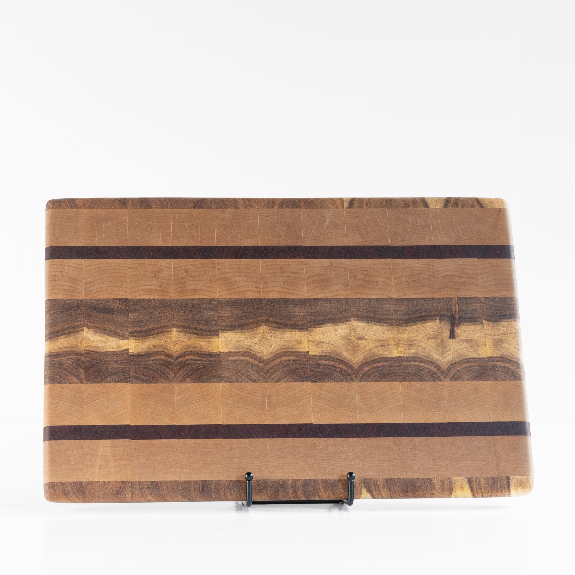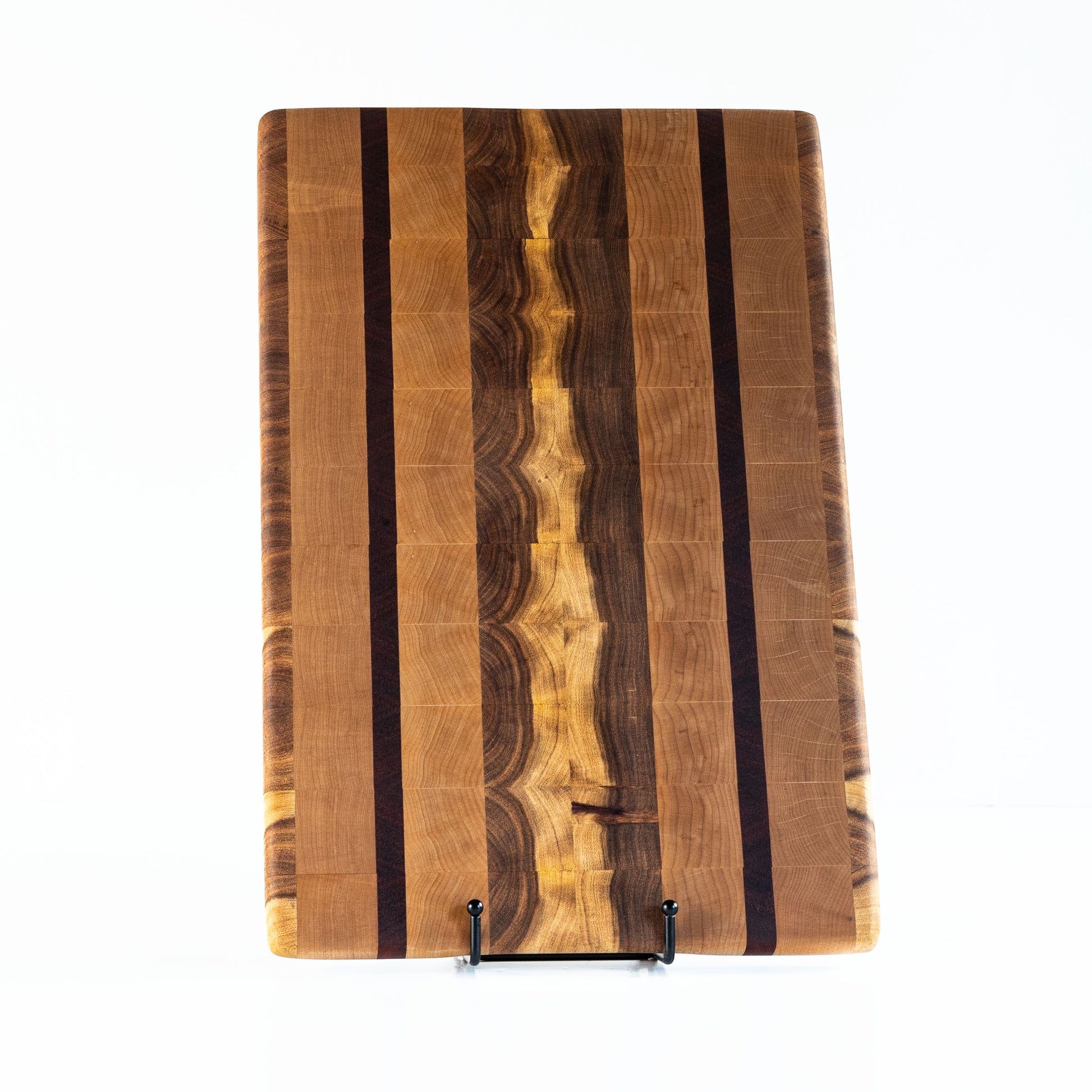 This unique mix of hard Maple and decorative Mesquite will serve you for many years. Since it is an end-grain board it won't dull your knives as quickly as an edge grain board. Although wood boards never dull you knives as fast as those plastic one you can get for a couple of bucks!