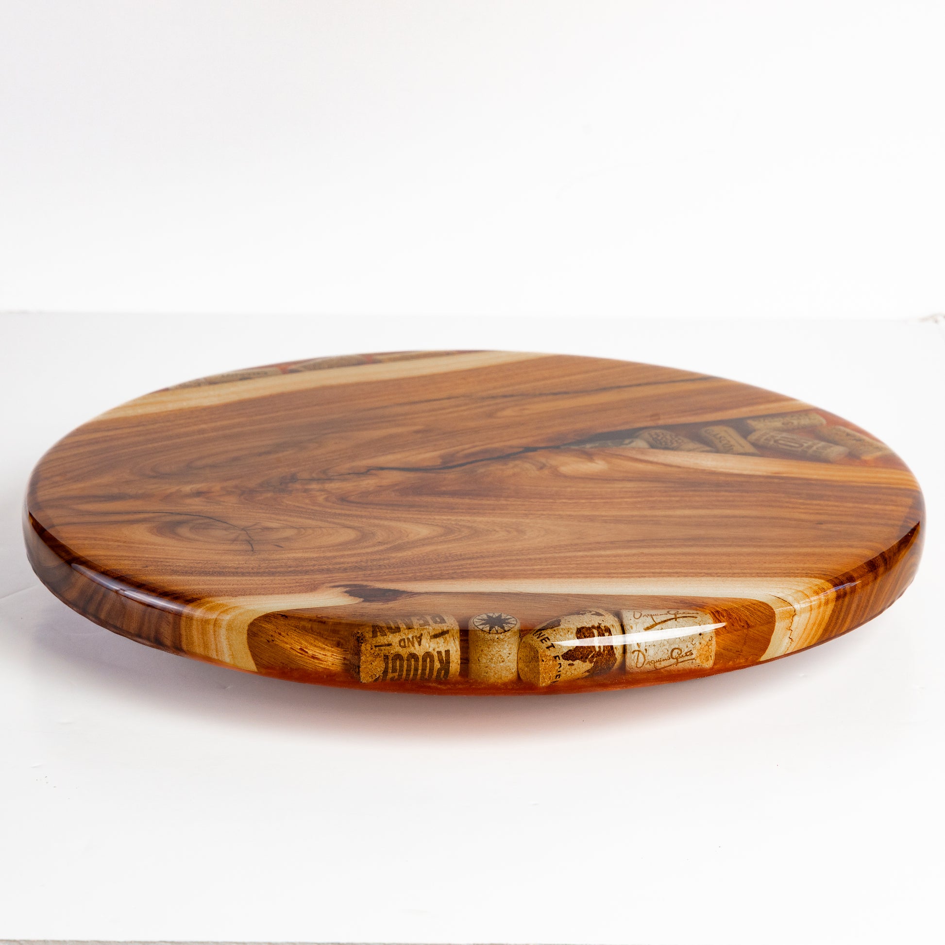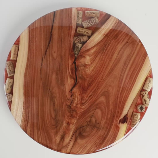 An original Lazy Susan crafted from Willow Acacia wood and wine corks we've been collecting for a while. The Copper base layer of epoxy highlights the beautiful wood grain and the corks. Finished with crystal clear table-top epoxy that is food safe and beautiful.